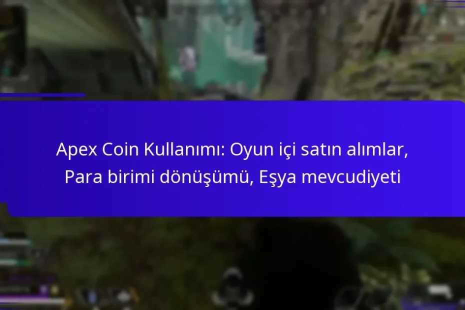 Apex Coin’lar, Apex Legends’daki premium oyun içi para birimidir ve oyunculara çeşitli kozmetik eşyalar, karakterler ve mevsimsel içerikler satın alma imkanı tanır. Gerçek para işlemleriyle edinilen bu paralar, oyunculara özel yükseltmelere erişim sağlayarak oyun deneyimini… Apex Coin Kullanımı: Oyun içi satın alımlar, Para birimi dönüşümü, Eşya mevcudiyeti